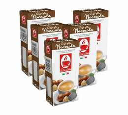Taste these delicious hazelnut-flavoured coffee capsules by Caffe Bonini. For an Italian espresso with sweet notes of hazelnuts. Capsules compatible with Nespresso® machines. 5 boxes of 10 capsules.
