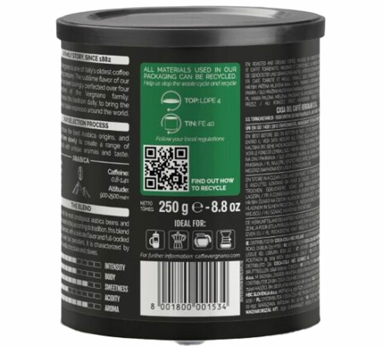 Enjoy a Pack of 4 x 250g Ground Coffee Caffè Vergnano 100% Arabica