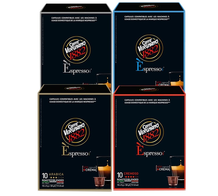 Pack of 40 capsules from the Vergnano brand. Compatible only with Caffe Vergnano machines.  Pack of 4 different Vergnano coffees for a good espresso (Arabica, Decaf, Intenso and Cremoso).