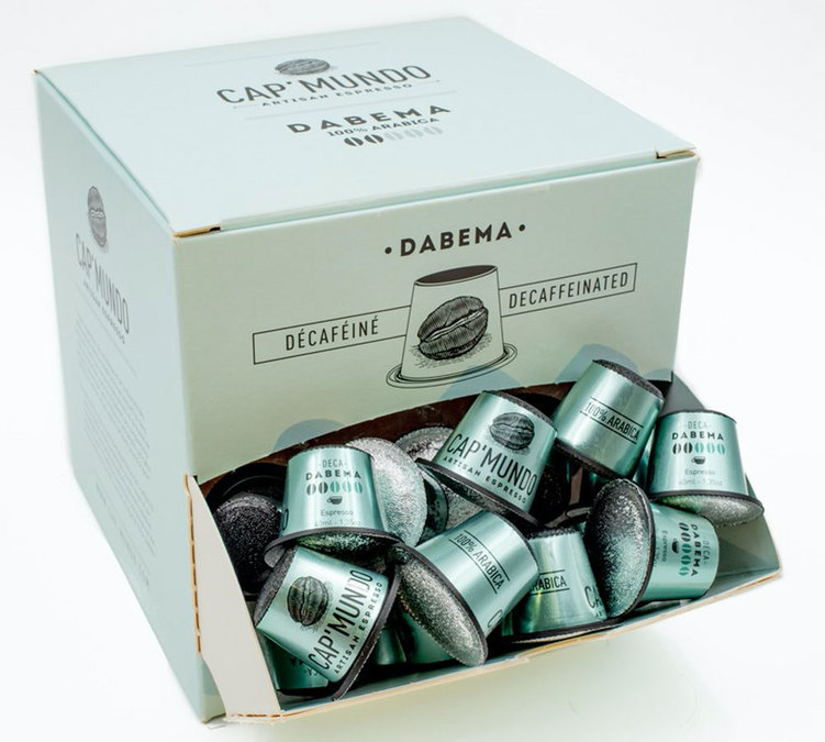 Dabema by Cap'Mundo: a mild decaffeinated coffee (no solvents used) with tasty notes.100% Arabica from Central America. 100 Nespresso-compatible capsules in dispensing box.