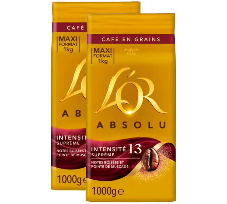 Discover L'Or Coffee Beans Intensity 13 in a Pack of 2 x 1kg
