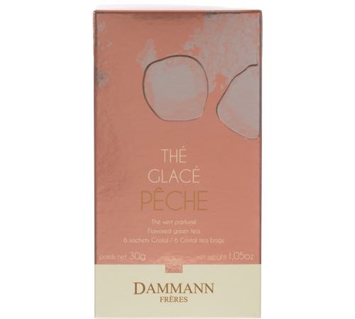 Discover peach iced tea from Dammann Frères. This green tea is a delicious and attractive invitation to the heart of the orchard, with all the delicacy of the peach blossom and the velvety sweetness of a succulent summer fruit. It comes in a box of six teabags, making a total of 6 litres of iced tea (1 litre of iced tea per each tea bag).