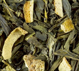Chinese Sencha green tea by Dammann Frères. 'Soleil Vert' delivers fruity and slightly acidic notes with blood orange essential oils & orange peel. 100g loose leaf tea in sealed packet.