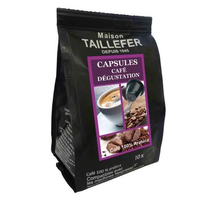 Discover these 100% Arabica coffee capsules from Maison Taillefer, compatible with Nespresso® machines. 1 pack of 10 capsules.