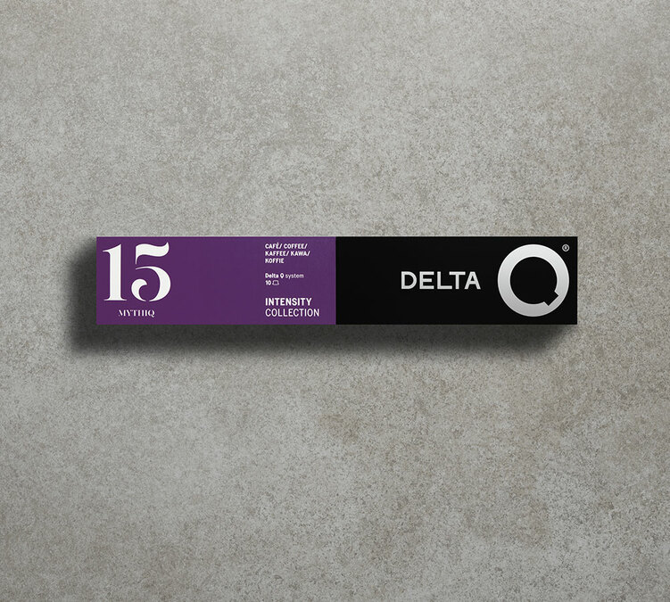DeltaQ N°15 MythiQ coffee capsules for Delta espresso machines: A blend from Cameroon & Angola for a strong espresso with aromatic notes of cocoa & raspberry, just a hint of acidity. Roasted in Portugal. Box of 10 Delta Q coffee capsules.