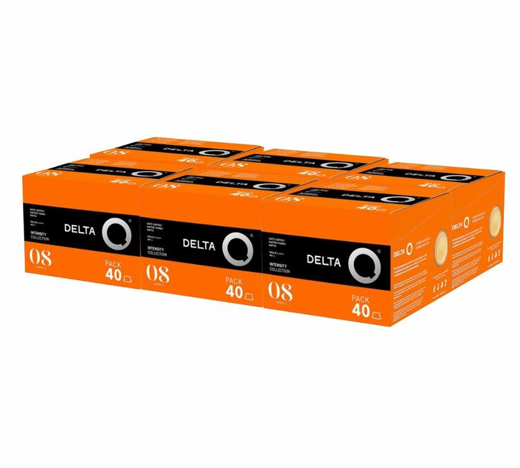 DeltaQ N°8 aQtivus is a blend of coffees from Laos, Vietnam and Salvador. For a strong aromatic espresso. Roasted in Portugal. 6 packs of 40 Delta Q coffee capsules.