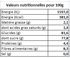 Unrefined cane sugar * (78%), cocoa * lean powder (20%), oat cream * (2%)