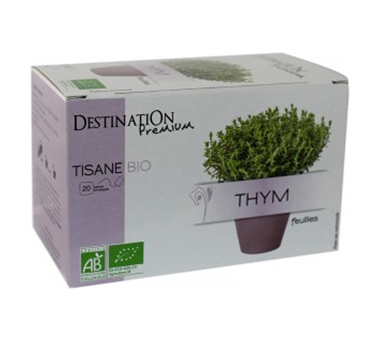 Destination organic Thyme herbal tea. A healthy infusion, both refreshing and invigorating. Thyme is believed to have many great properties. 1 box of 20 individually-wrapped sachets (1.5g each)