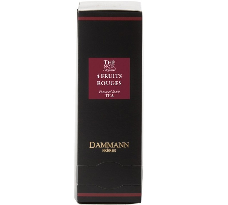 '4 Fruits Rouges' is a lovely blend of black tea with cherry, strawberry, raspberry and redcurrant by Dammann Frères. For the perfect taste explosion! 1 box of 24 individually-wrapped Cristal® sachets