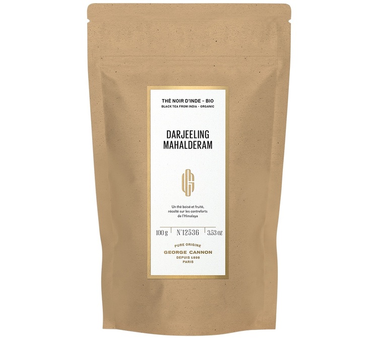 Discover the Darjeeling Mahalderam organic black tea by George Cannon. A pure origin Darjeeling from the Himalaya. For a delicate tea with woody and fruity notes. Ideal in the morning. 1 sealed pack of 100g loose leaf tea.
