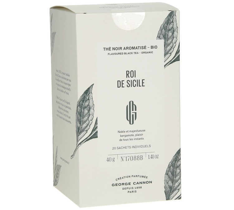 George Cannon 'Roi de Sicile' is an organic black tea from China enriched with bergamot and cornflower petals. A real pleasure, any time of the day. 20 individual sachets in a box.
