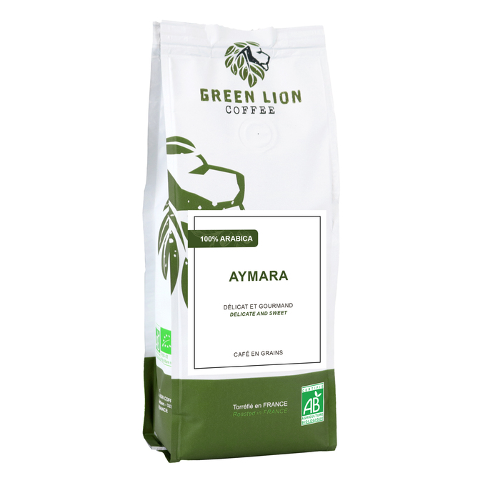 Green Lion Coffee Aymara is a 100% Arabica blend from Honduras. Certified organic. For a balanced coffee with lovely gourmet notes. Roasted in France. 250g coffee beans.