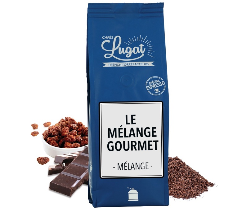 This Gourmet blend ground coffee is a 100% Arabica blend, put together and especially roasted by the expert team at Cafés Lugat to create a quality espresso. This blend is made from Brazilian, Peruvian and Ethiopian Arabicas. Regular roast designed for good espressi. Packaging: 250g.