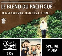 This Pacific Blend ground coffee for moka pots is a blend of organic Arabica coffees from Guatemala, Costa Rica and Colombia specially assembled and roasted by the Cafés Lugat roasting team. This medium roast coffee offers you a smooth and gourmet coffee with notes of hazelnut spread, almonds and chocolate.. Packaging: 4 x 250g