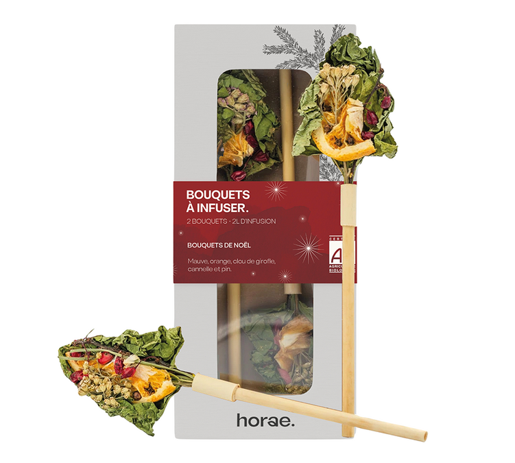 Here's a new way to celebrate Christmas with a blooming tea! The Horae brand, which specialises in creating herbal tea bouquets, is getting in on the Christmas flavour with these Christmas tree-shaped bouquets. These bouquets are perfect for yourself, as gifts or for entertaining family and friends. In a cup, you'll enjoy the great tastes of winter (orange, spices, pine, etc). And if you prefer other flavours, don't hesitate to discover the rest of the Horae collection in our loose leaf teas catalogue.