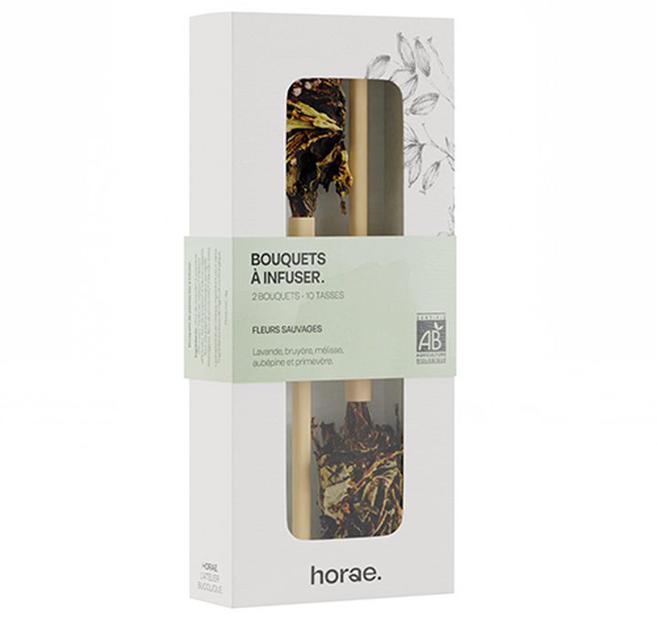 Horae is a French brand that respects the seasons, plants and biodiversity. The flowers are harvested according to a biodynamic calendar and dried naturally. They are then assembled by hand to create these flowering tea bulbs.