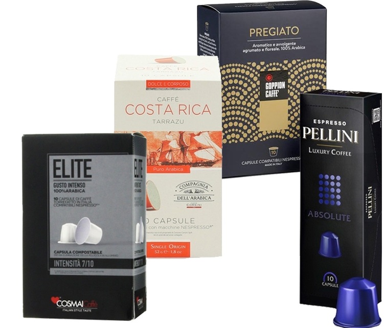 Try this Italian 100% Arabica pack containing 40 Nespresso-compatible capsules. 4 different coffees roasted in Italy. A MaxiCoffee exclusive.