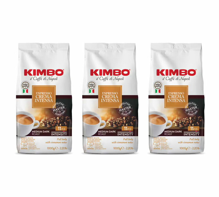 The Crema Intensa coffee beans are a blend of Arabica from Central and South America and Robusta from Asia. For lovers of a balanced coffee with harmonious aromas and a beautiful crema. 3kg coffee beans by Italian brand Kimbo.