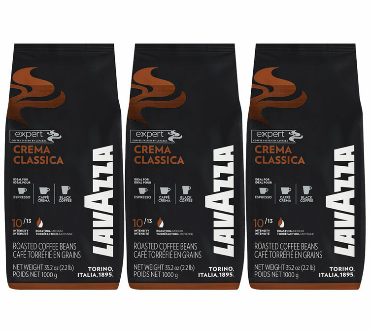 Lavazza coffee beans Crema Classica: a blend of Arabica from Central & South America with Robusta from Asia and Africa. This coffee offers a tasty cup of coffee with spicy notes and a hint of dark chocolate. Lavazza Expert Plus range made for professionals. 3 x 1kg coffee beans bags.