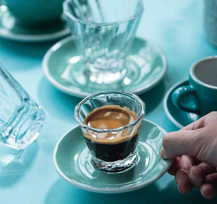 Their distinctive twisted exterior refracts the light of the coffee in a unique way, unlike any other glass. Beyond its striking visual appeal, the curved shape allows the coffee crema to fully develop, delivering surprisingly rich tasting sensations with every sip.
