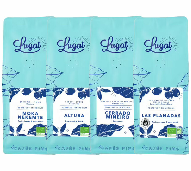 Embark on a journey through four iconic coffee-growing regions with this exclusive pack by Lugat, roasted in France for outstanding freshness. Perfect for varying your brews, refining your extractions or discovering your next favourite coffee.