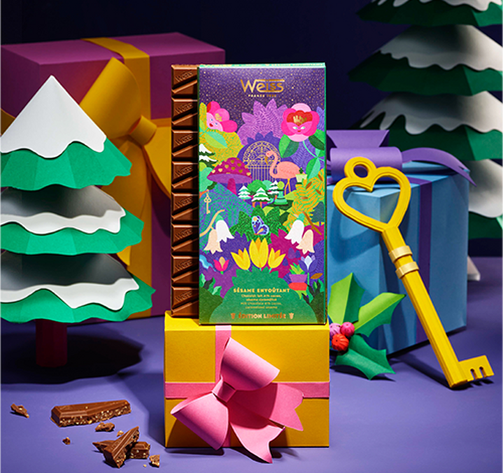 The most irresistible pairing of nougatine and milk chocolate comes to life in this limited-edition creation from the Weiss chocolatiers! The “Douceur Nougatine” milk chocolate bar is a Christmas chocolate that everyone will love. Smooth, melt-in-the-mouth milk chocolate meets the delicious crunch of nougatine for a truly indulgent treat.
