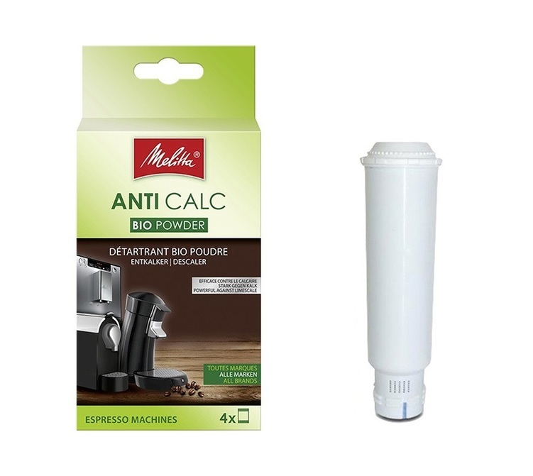 • This pack contains 2 sachets of ANTI CALC descaling powder, 4 PERFECT CLEAN tablets & 1 Filter Logic water filter compatible with Melitta CAFFEO.