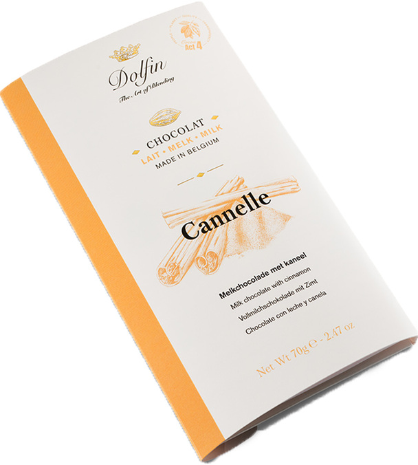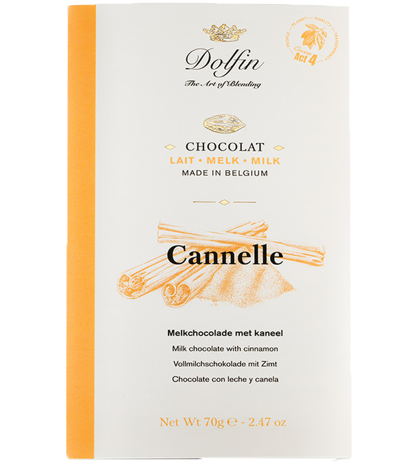 ant to discover new flavours? Try flavoured chocolate bars! Belgian chocolatier Dolfin is a master in the art and now offers a milk chocolate bar with cinnamon. The cinnamon enhances the taste of the milk chocolate and gives it its aromatic, warm and joyful notes. While it can be enjoyed on its own, don't hesitate to savour it with a spicy tea or a strong coffee to appreciate all its flavours.