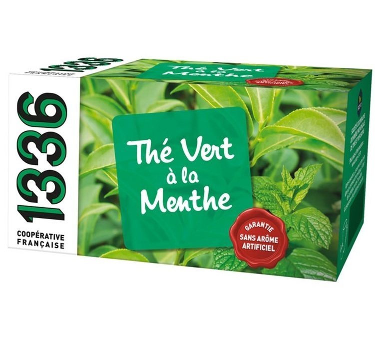 Box of 20 chiffon tea bags of mint green tea from 1336, a brand launched by SCOP TI in France. A 100% natural and refreshing tea.No artificial flavourings