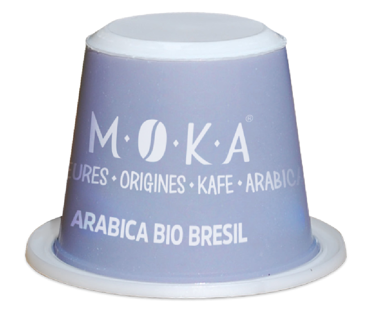 MOKA "Honduras" organic and biodegradable capsules for Nespresso* Original machines. For a strong espresso with fruity notes. Pure origin organic coffee from Honduras. 100 % Arabica. The MOKA capsules are vegetal : they are made of corn starch with no aluminium at all. Biodegradable within 3 months. 1 box of 10 capsules.