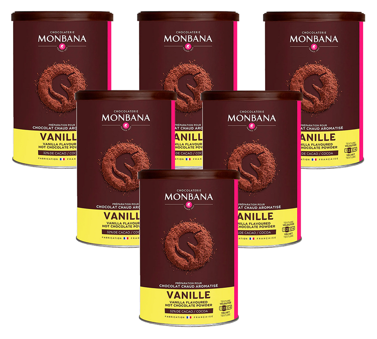 Thanks to its two production sites in France and its own plantations, Monbana showcases its love for chocolate through its drinks, cakes and chocolate bars.| Monbana Hot Chocolate Powder Vanilla Flavoured - 6x250g | |