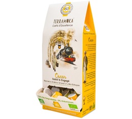 Oscar from TerraMoka is an organic pure origin Moka from Ethiopia. For a balanced coffee with citrus notes. 1 box of 60 biodegradable Nespresso® compatible pods.