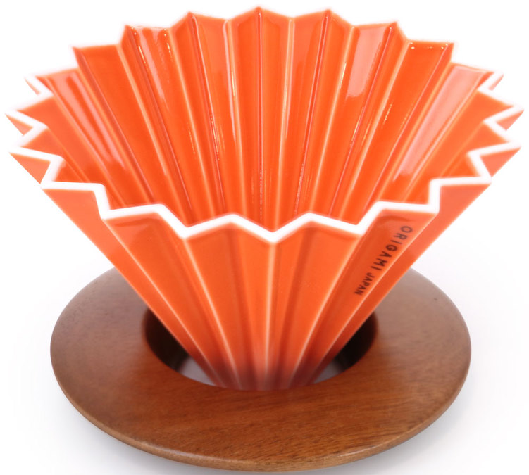 This Origami orange dripper is traditionally made in Japan, with an elegant design. It is a dripper with bright coloring and vertical grooves that makes it look like a folded ORIGAMI. The ribs (grooves) of the 20 drippers create a space between the dripper and the paper, making it easier for hot water to drain and expressing a variety of extractions. Speed control is also free.