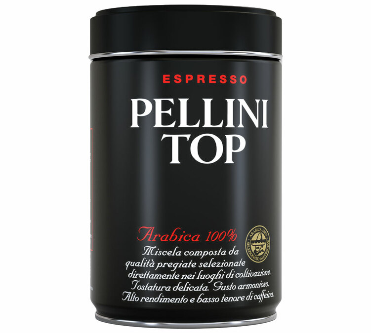 Pellini Top is a unique italian coffee with very little caffeine. This ground coffee is perfect for drip filter coffee machines and Moka pots. Pellini Top was awarded the Gold Medal at the International Coffee Tasting Awards. Italian roast. 250g ground coffee.