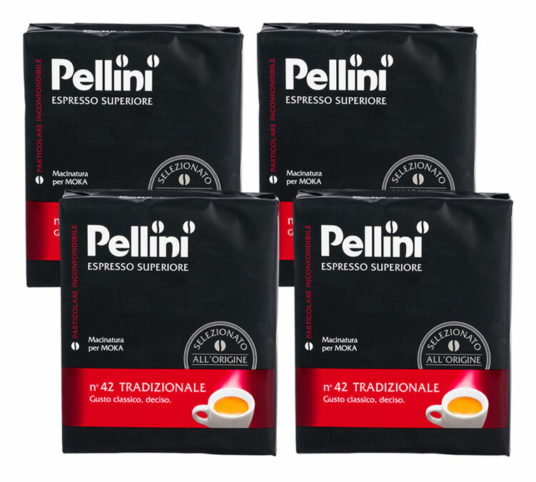 N°42 Traditionale 100% Robusta ground coffee from Pellini. This coffee is the strongest in the brand's espresso supérieur range. Packaged in 4x250g This coffee was named taste of the year 2015 by Italian consumers!