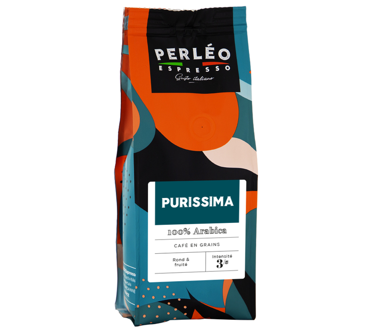 Discover this 100% arabica blend, Perleo Espresso Purissima! A concentrate of intense aromas that have made and continue to make this Italian-style roast a success. Espresso lovers will love the fruity, rounded flavour of this coffee, with its chocolate notes, praline and orange peel. Packaging: 250g pack