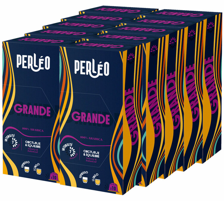 The Nespresso* Original Perléo Grande compatible pods have been designed to meet the demands of professional environments, where consistency and quality in the cup are essential. Made from recyclable aluminium and fully compatible with the Nespresso* system, they guarantee precise and optimal extraction. This 100% arabica blend reveals a structured aromatic range, supported by a meticulous roasting process. In the cup, it offers a harmonious espresso or lungo, blending rich cocoa notes and toasted bread with a fruity touch reminiscent of candied figs. The pack includes 10 boxes of 10 pods, for a total of 100 pods, ideal for ensuring a reliable supply in a professional setting.