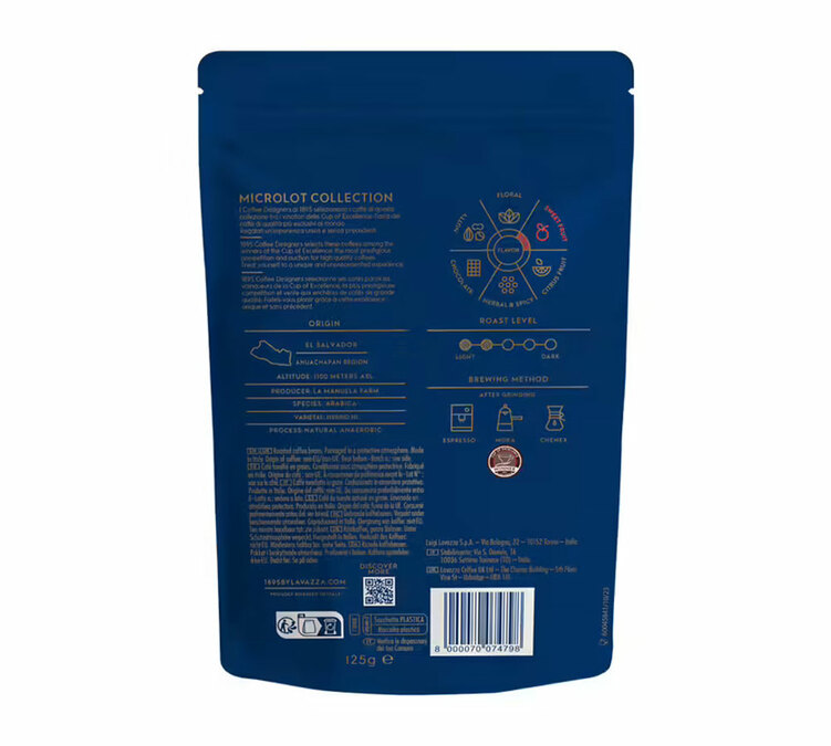 1895 by Lavazza's Pour-Over Coffee Kit is an introduction to the art of specialty coffee. Its ceramic V60 dripper, perfect for one or two cups, and its elegant design make it a must-have for coffee lovers looking for an authentic experience. Versatile and flavoursome, Avanguardia IX is a specialty coffee produced in microlots in El Salvador. Its rich and fruity notes are both perfect for espresso or pour-over coffee.