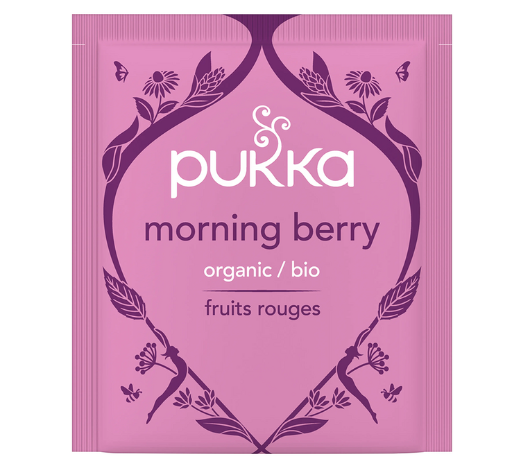 Discover Pukka's Morning Berry herbal tea with blackcurrant and blackberry, a delicious blend of rooibos and hibiscus flowers. The result is a delightful and refreshing cup. It comes in a box of 20 individually wrapped tea bags.