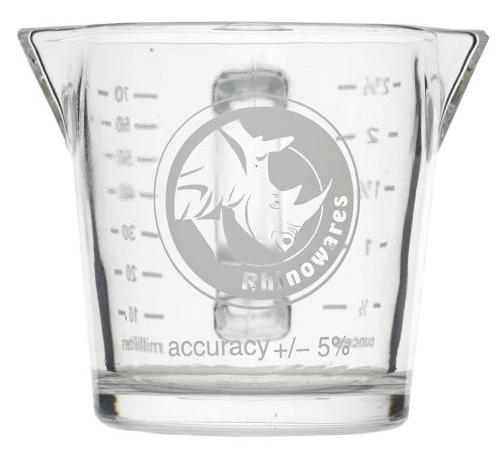 This Rhino Coffee Gear graduated glass is made to measure up your single or double espresso (10 ml to 70 ml). Doses written in ounces and milliliters. With 2 pouring spouts and handle. Made of strong glass.