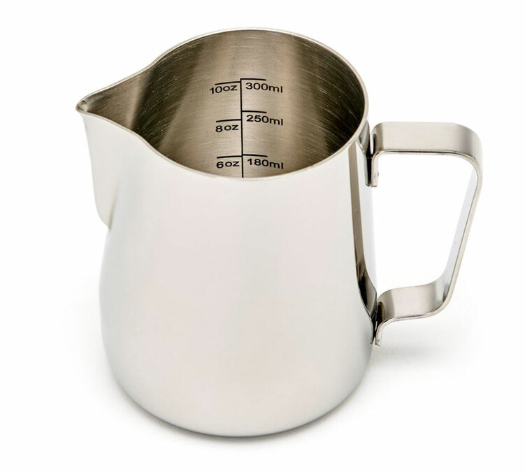 Rhino Coffee Gear created this graduated milk pitcher especially for coffee professionals. Capacity: 36cl/12oz. The measurements are etched inside the jug (on both sides) in oz and ml. Made of 1mm food grade stainless steel.
