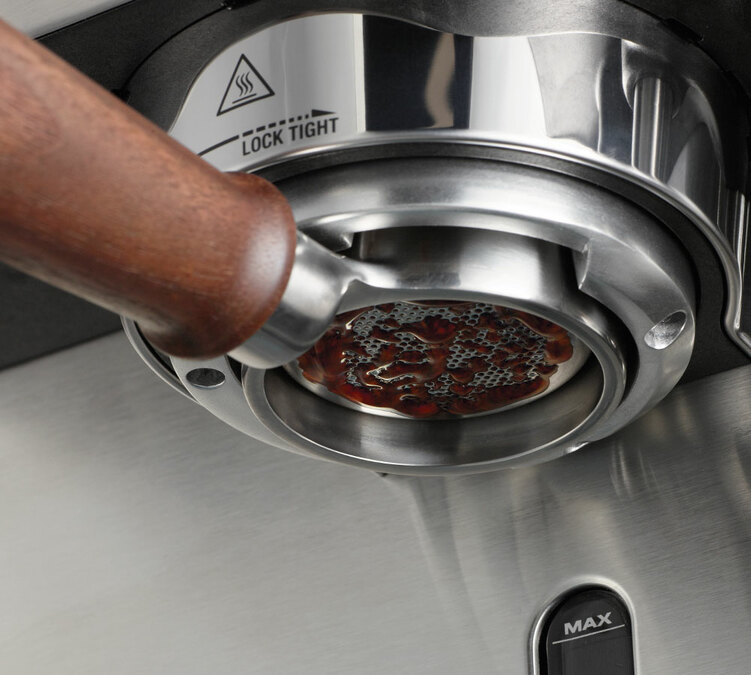 Robust and precise, the SAGE 54mm stainless steel naked portafilter gives you a clear view of the extraction, while standing the test of time. Its walnut wood handle adds an authentic touch.