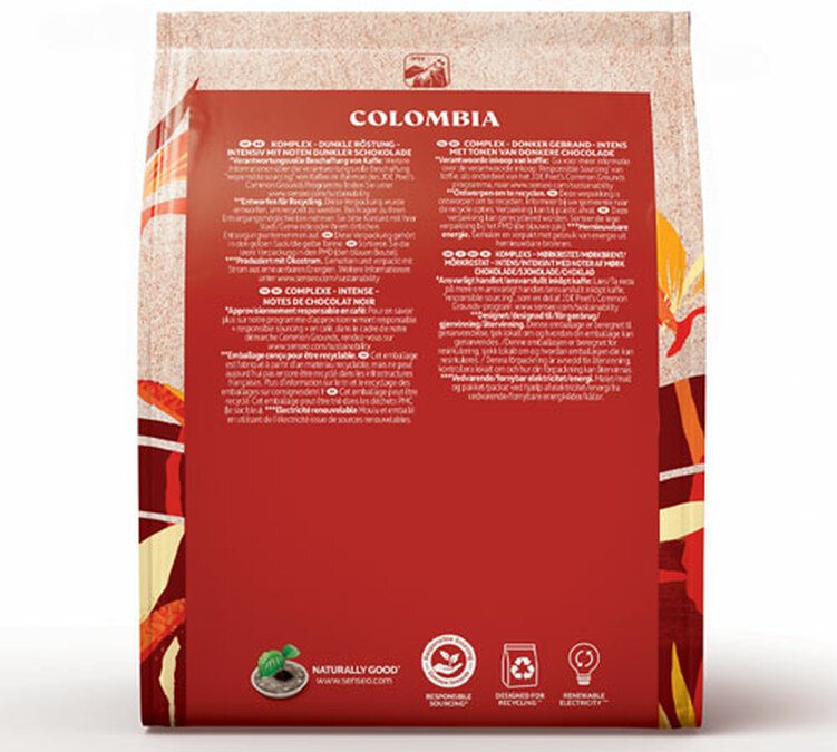 Discover Senseo Colombia Espresso pods for Senseo coffee capsule machines. A strong-roasted Arabica blend with an intense aroma and rich flavour. A full-bodied coffee with a delicate froth that owes its unique character to the fertile volcanic soils of Colombia. This coffee is ideal for lovers of coffee with character.