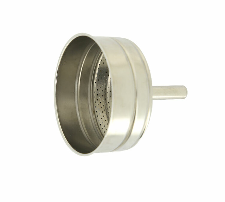 Stainless steel funnel Pylano Kiara 9-cup moka pots. Compatible with Bialetti Induction moka pots of the same size. Note that this funnel is in stainless steel while Bialetti's funnels are in aluminium. This funnel is dishwasher safe.