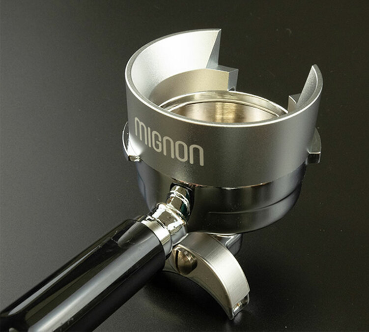 Ce Dosing Funnel est le seul entonnoir doseur qui s'adapte parfaitement au « nez » du moulin Eureka Mignon.