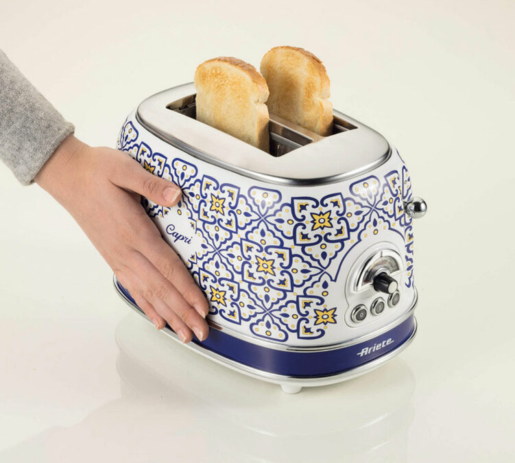Fermez les yeux et imaginez les façades colorées, les senteurs méditerranéennes et le charme solaire de Capri… Ariete a capturé cet esprit dans un grille-pain au design intemporel. Véritable objet déco, il transforme votre plan de travail en coin de dolce vita, tout en vous offrant des performances pensées pour vos petits-déjeuners et brunchs les plus gourmands.