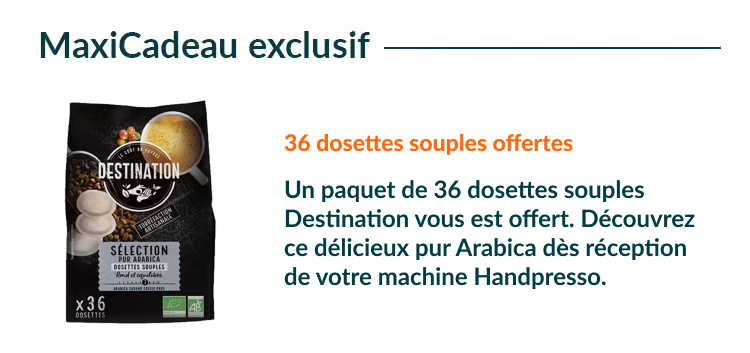 Cadeaux MaxiCoffee : 36 dosettes de café Destination offertes avec ce produit.