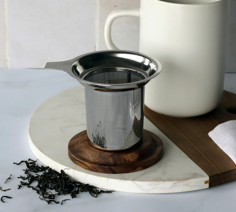 Avis client sur Infuseur à thé en acier inoxydable avec couvercle bois acacia OGO Living