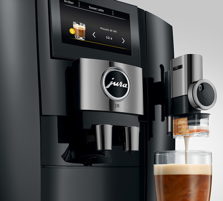 La machine à café à grain Jura J10 offre une fonction qui ravira les amateurs de tous âges et augmentera les possibilités ! Le Sweet Foam permet d’ajouter un accessoire à la buse pour la préparation des boissons lactées. Avec cet accessoire, vous pouvez incorporer le sirop de votre choix ! Cela vous permet d’aromatiser vos boissons lactées avec une variété de saveurs : caramel, noisette, vanille, cookie, spéculoos, etc. Vous avez la possibilité de choisir un goût léger ou plus prononcé. Le mélange se fait lors de la création de la mousse de lait, assurant un résultat crémeux et homogène.