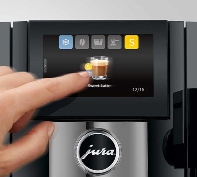 Cette cafetière à grain Jura J10 Piano Black se manipule facilement grâce à son écran tactile de 4,3". Explorez le menu et consultez les boissons disponibles, personnalisables en toute simplicité ! Jura facilite votre quotidien avec la technologie Coffee Eye. Cette fonction permet à la machine de détecter la buse sous laquelle se trouve le verre. En fonction de la buse (café ou lait), les boissons réalisables apparaissent directement à l'écran. Impossible de se tromper !